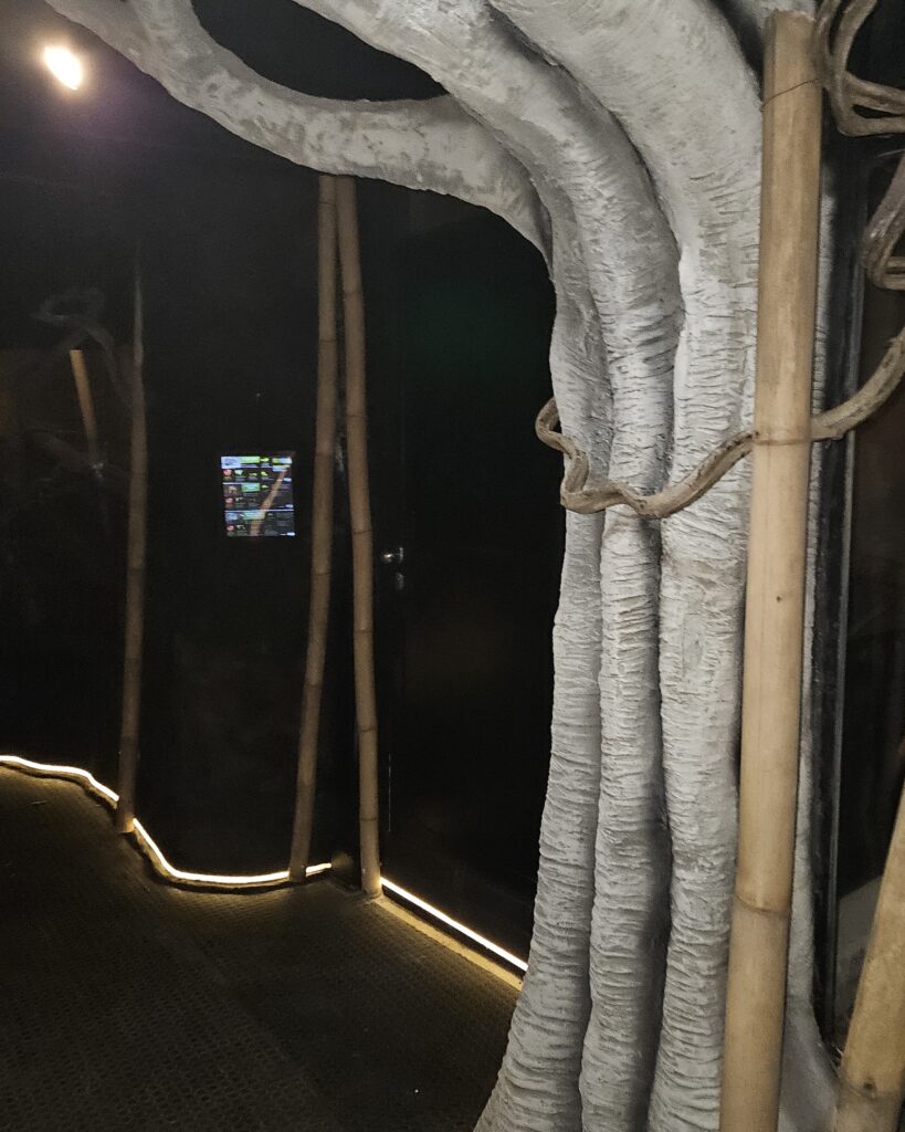 U Zoološkom vrtu u Zagrebu radimo interijere za nastambe i akvarije neškodljivo i pogodno za boravak životinja i kukaca. Izradili smo realistično umjetno drveće i drugu floru, špiljske ukrase: stalagmite i stalaktite, stijene i druge ambijentalne dekore.